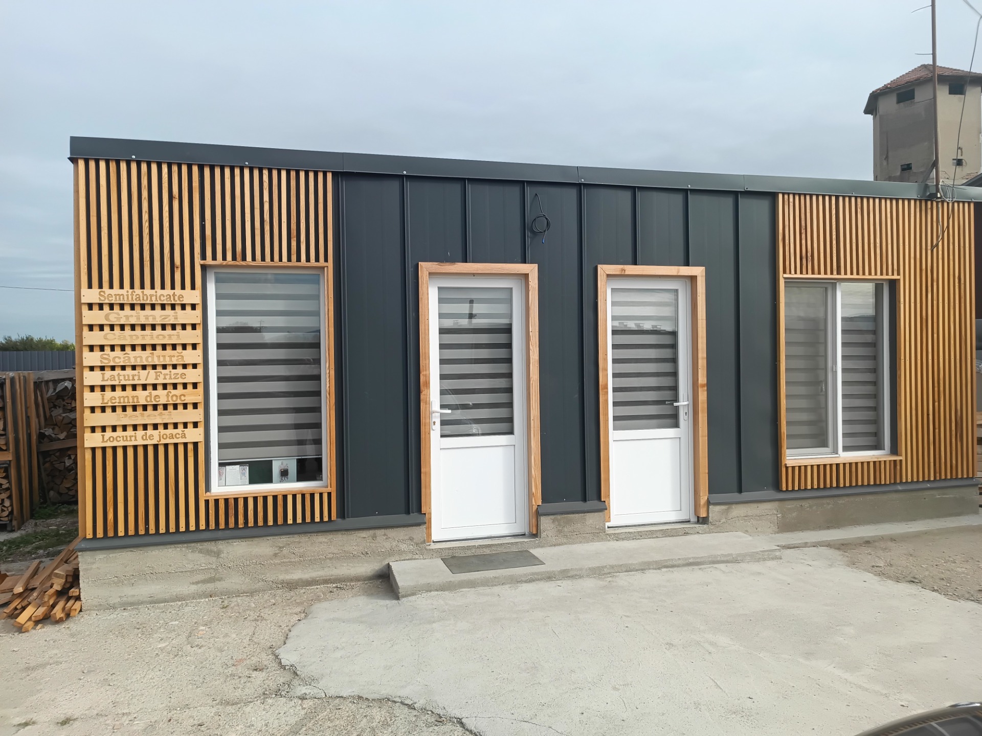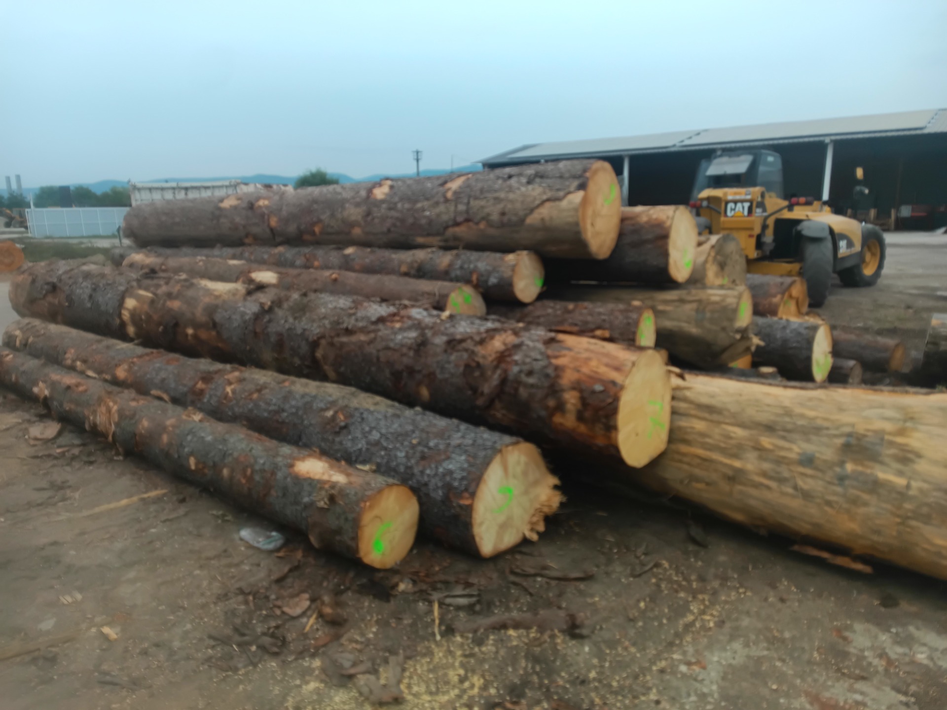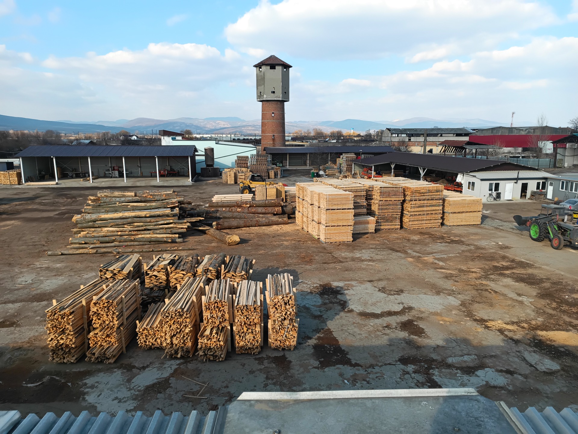 Galeria de imagini prezintă o varietate de produse din lemn de calitate superioară, precum busteni, cherestea și lemn de foc și peleți, toate obținute prin procese de debitare și prelucrare profesionale.