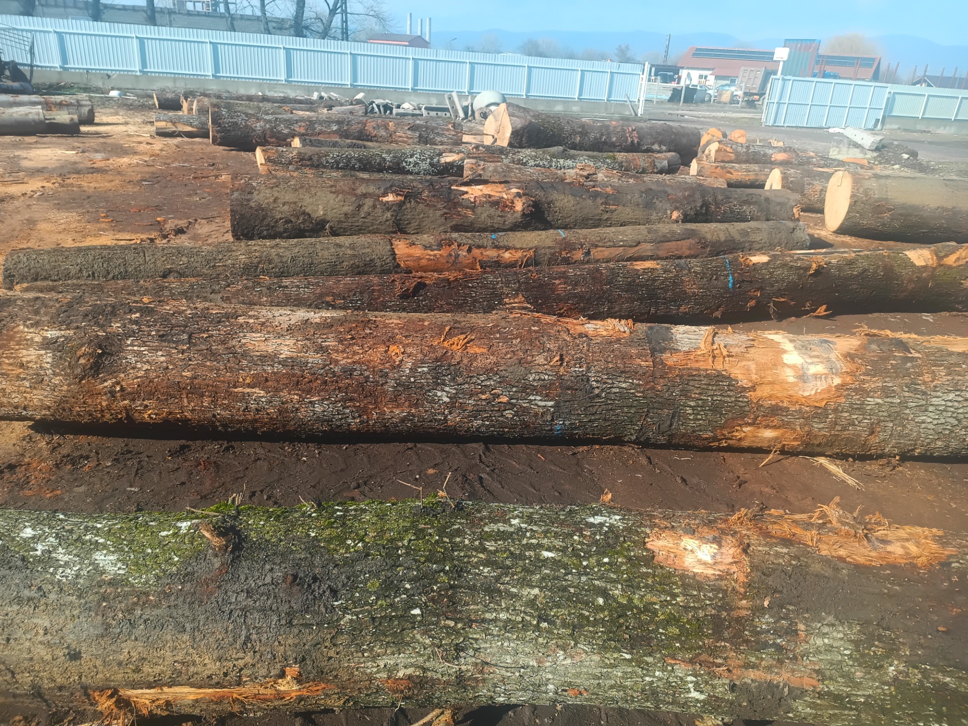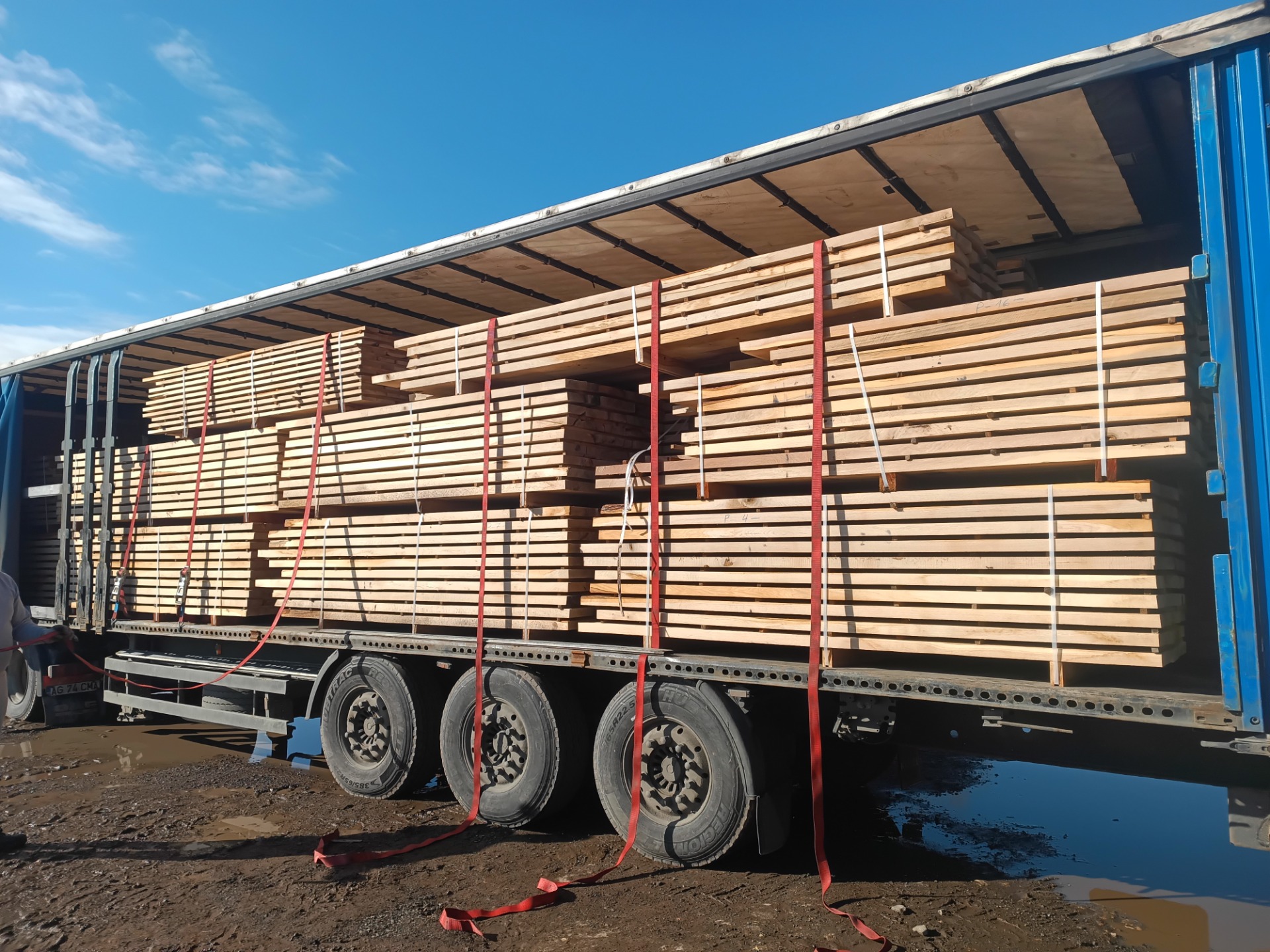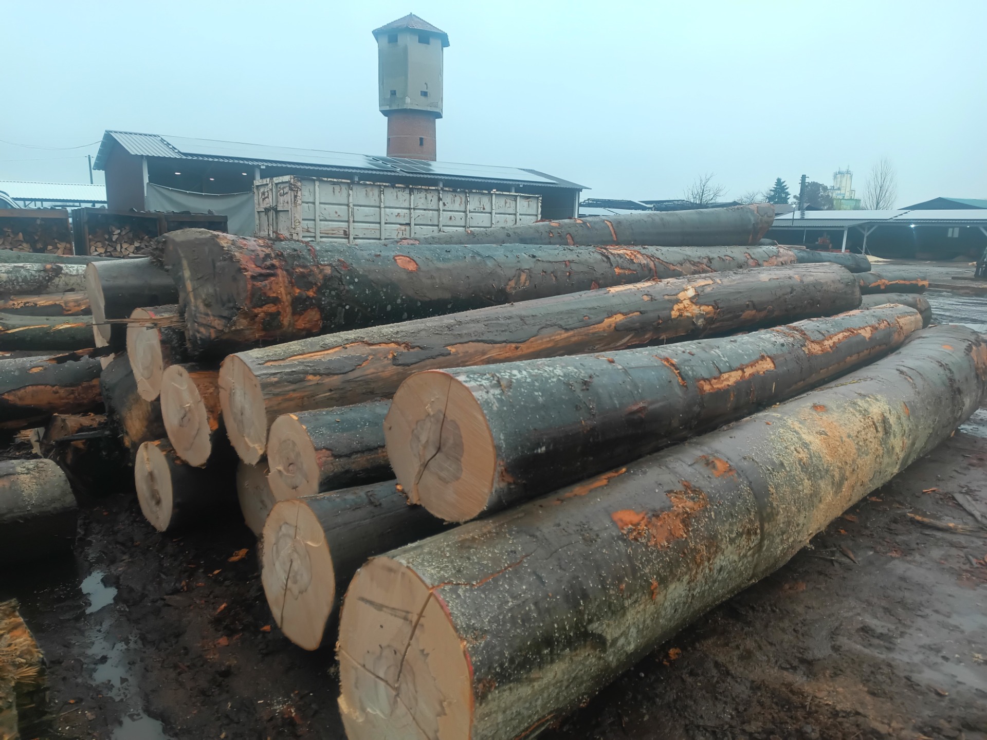 Galeria de imagini prezintă o varietate de produse din lemn de calitate superioară, precum busteni, cherestea și lemn de foc și peleți, toate obținute prin procese de debitare și prelucrare profesionale.