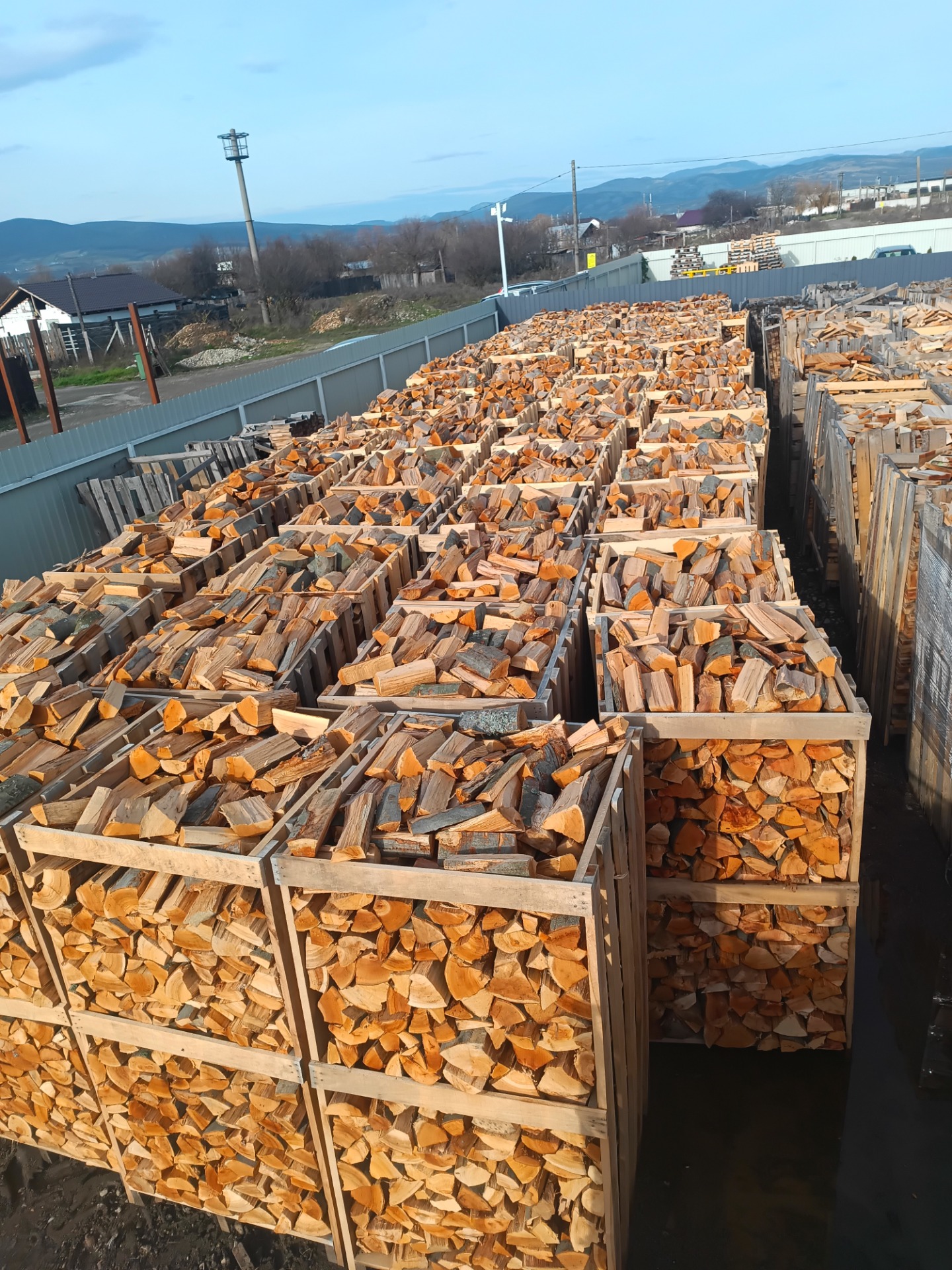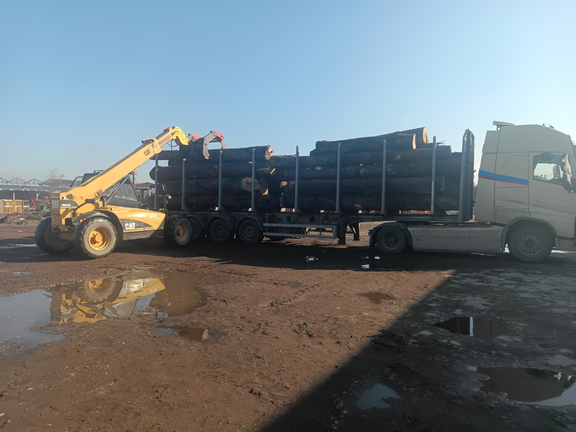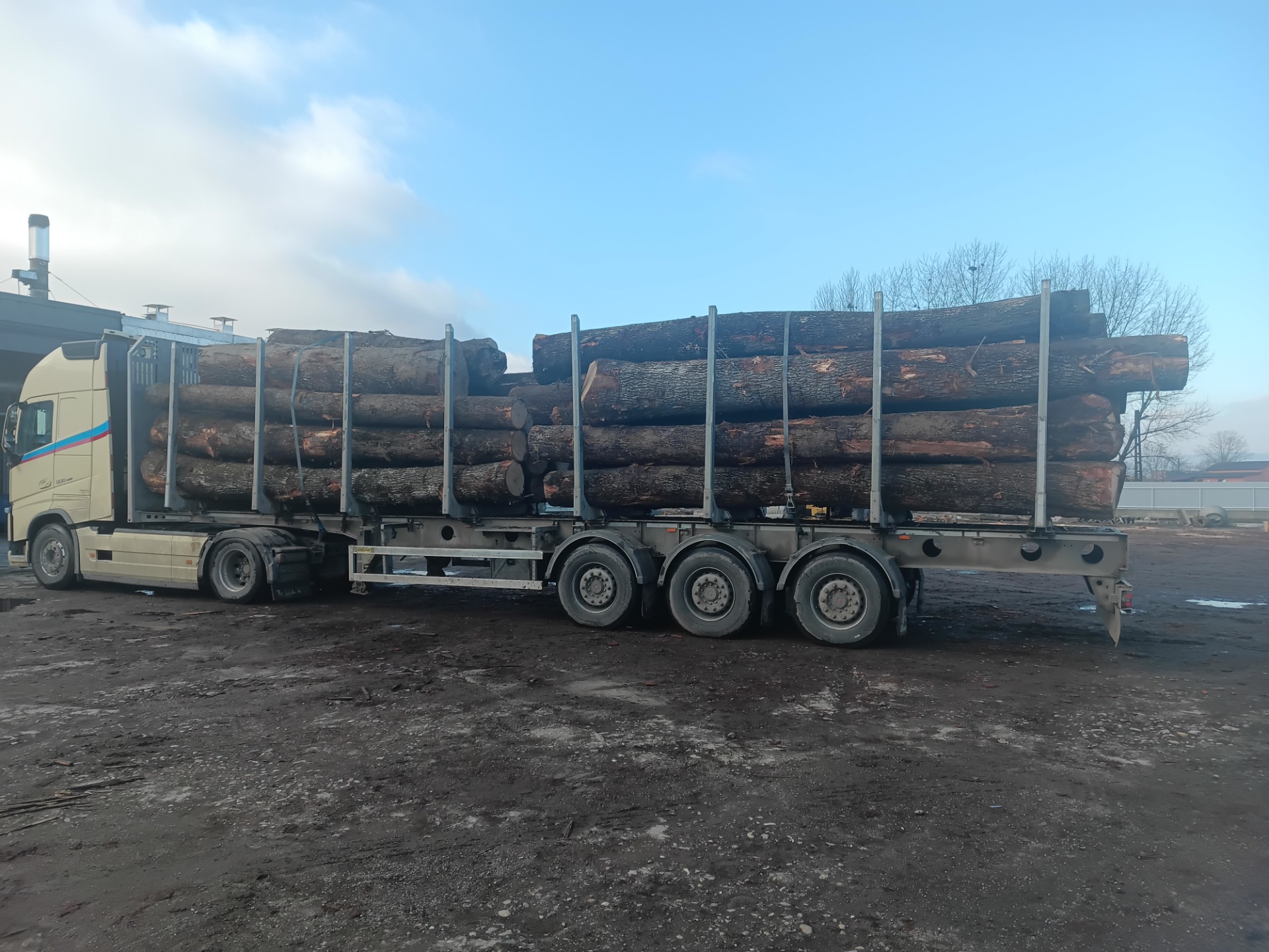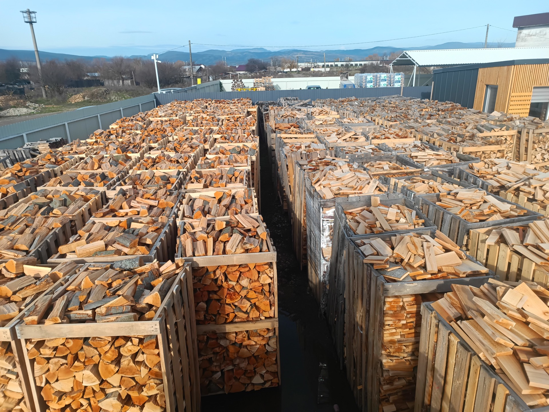 Galeria de imagini prezintă o varietate de produse din lemn de calitate superioară, precum busteni, cherestea și lemn de foc și peleți, toate obținute prin procese de debitare și prelucrare profesionale.